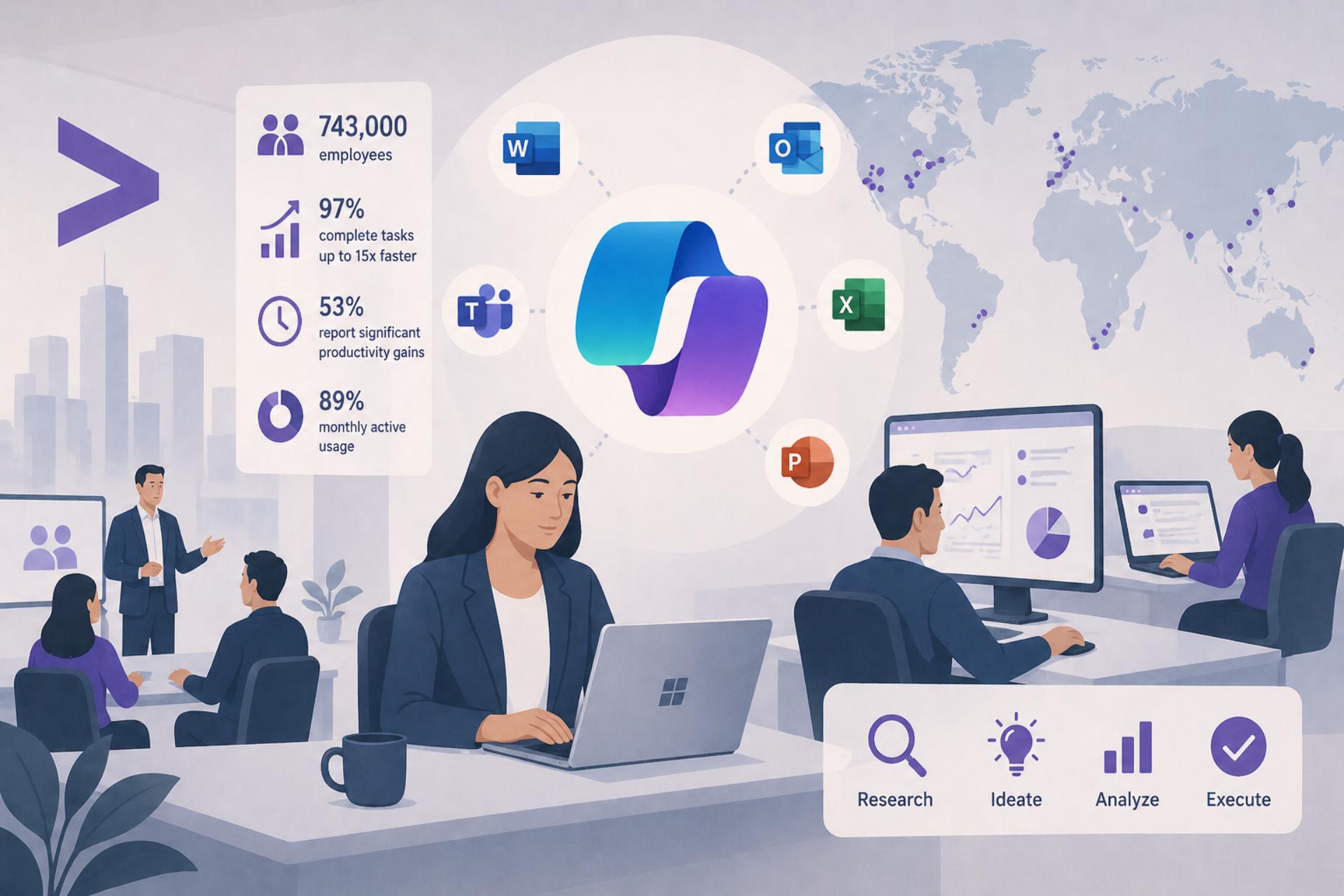 Accenture’s early focus was not just deployment, but control. The company used the initial phases to refine data governance, access controls and internal policies, while studying how employees used Copilot inside tools like Outlook, Teams and Word. That groundwork shaped a broader rollout strategy tailored to different roles across a workforce that spans more than 120 countries.