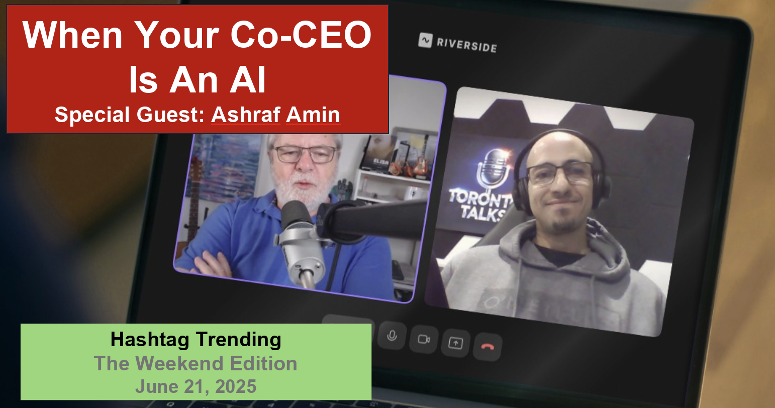 In this episode of Hashtag Trending’s Weekend Edition, the host dives into a fascinating conversation with Ashraf Amin, a Canadian entrepreneur, storyteller, and former recording artist. Amin, who has a diverse background in business and technology, shares his groundbreaking experience of partnering with an AI named Sophie to co-run his tech startup.